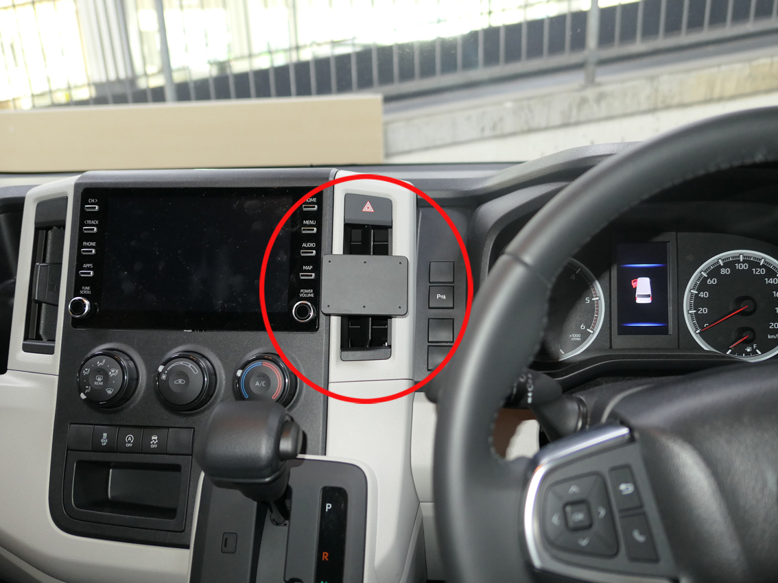 A vehicle-specific mount kit for the Toyota Hi Ace Year 20-26 with the Aukey MagFusion and a free ball joint. Installs easily with no drilling required. The Mount is custom made for your vehicle for a secure, stable fit. No Dropping Off.
