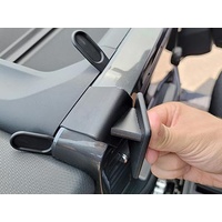 3. Press the gap openers into the gap on top of the dashboard. Press forward on the upper part of the ClicOn until you hear/feel the upper edge snaps into place in the gap between the gap openers. Press down on top of the ClicOn so the edge goes all the way into the gap. Pull out the gap openers.
