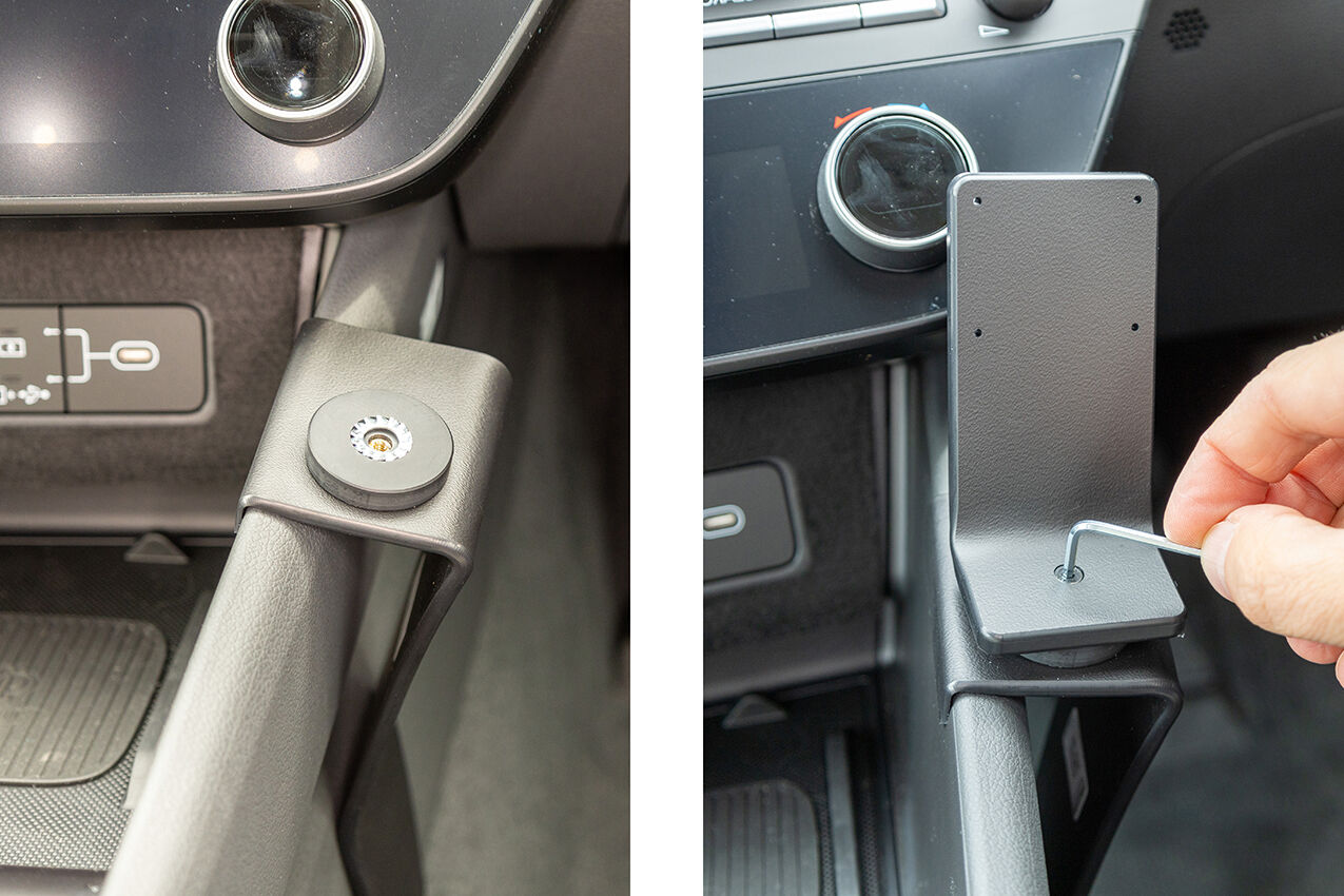 A vehicle-specific mount kit for the Hyundai Sonata Yrs:24-26 with Non Charging Adjustable Holder. Installs easily with no drilling required. The Mount is custom made for your vehicle for a secure, stable fit. No Dropping Off.